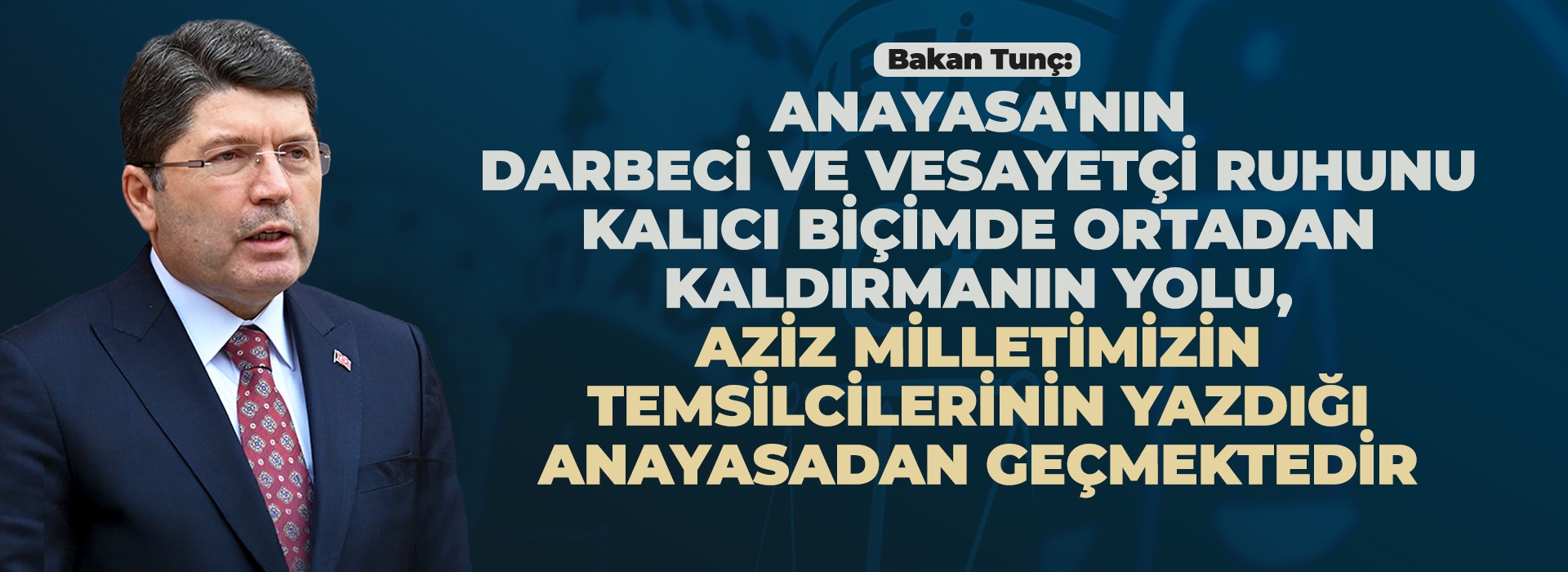 BAKAN TUNÇ: TÜRKİYE YÜZYILI’NA DARBE ANAYASASI DEĞİL, MİLLETİMİZİN ONAYLAYACAĞI ANAYASA YAKIŞIR Adalet Bakanı Yılmaz Tunç, “180 civarında değişiklikle artık yamalı bohçaya dönüşen bir darbe anayasasıyla...